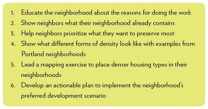 The Dynamic Density process empowers neighborhoods to direct how they would like to grow, and enables them to share in the economic benefits of development in their communities.